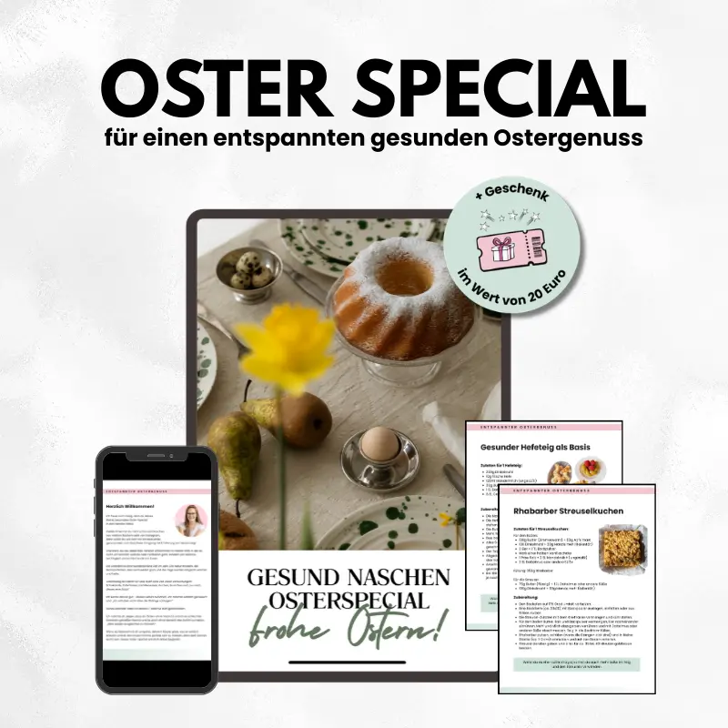 Du willst backen, naschen, eine schöne Kaffeetafel vorbereiten oder einen liebevollen Osterbrunch gestalten – aber in gesund, ausgewogen und ohne unnötige Zuckerfallen?